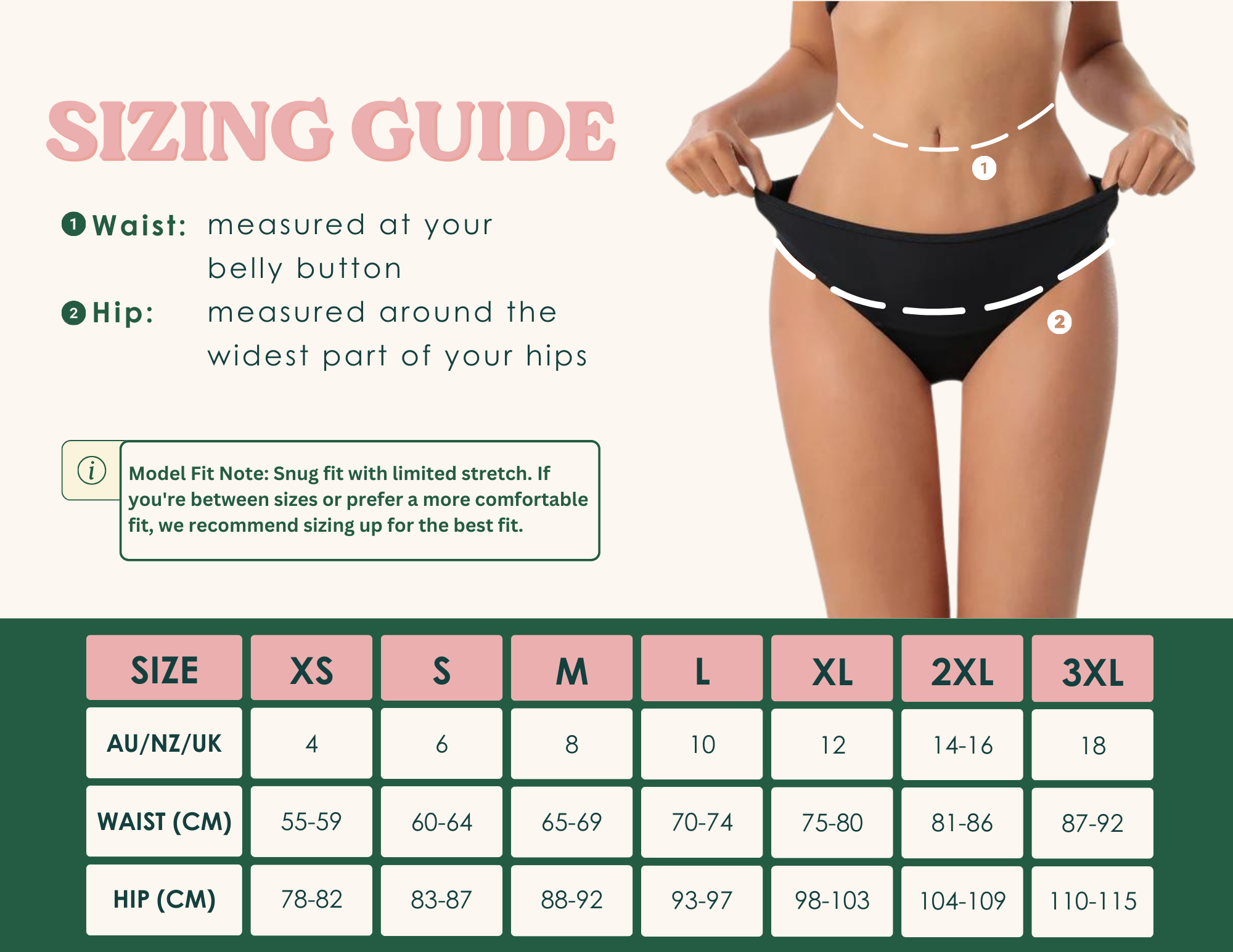 For heavy flows, our period swimwear can be worn in addition to other sanitary protection.