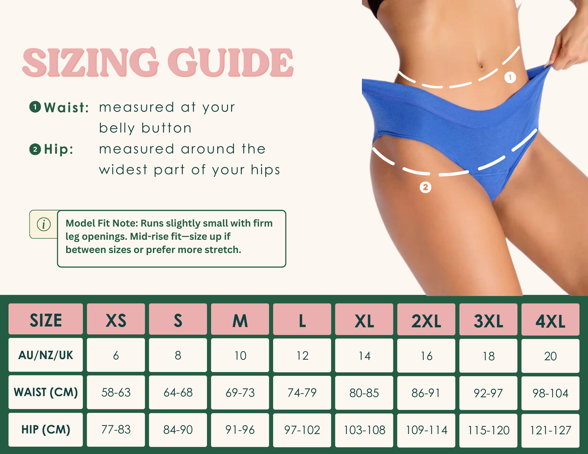 NOTE: Sizing can vary between styles, so we recommend checking our size chart and giving yourself a quick measure instead of relying on your usual AU size—especially if you’re ordering multiple styles.