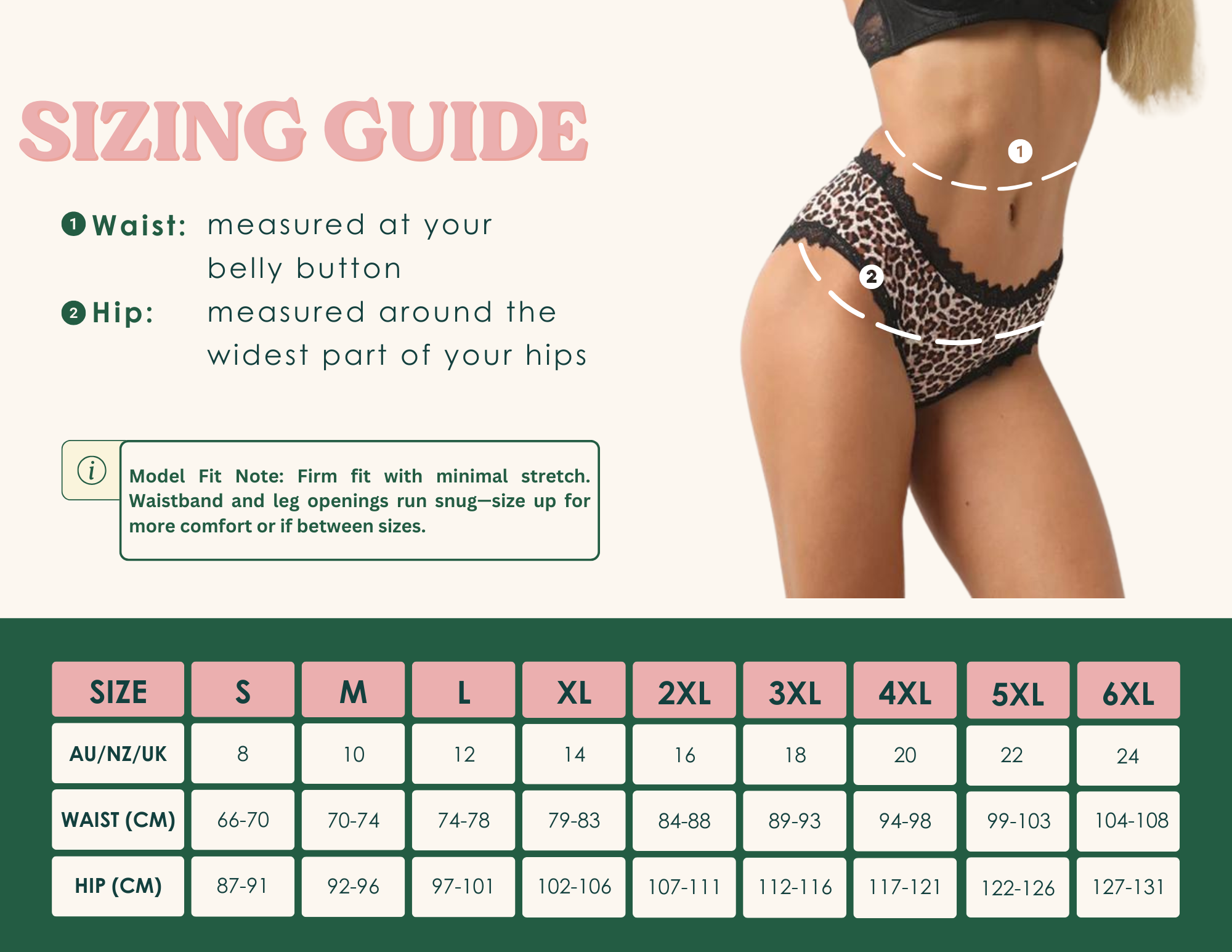 NOTE: Sizing can vary between styles, so we recommend checking our size chart and giving yourself a quick measure instead of relying on your usual AU size—especially if you’re ordering multiple styles.