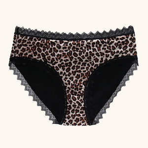 Crafted to emulate the grace of your favourite lace underwear, our Leopard Print Period Underwear provides discreet and fashionable protection for those moderate flow days.