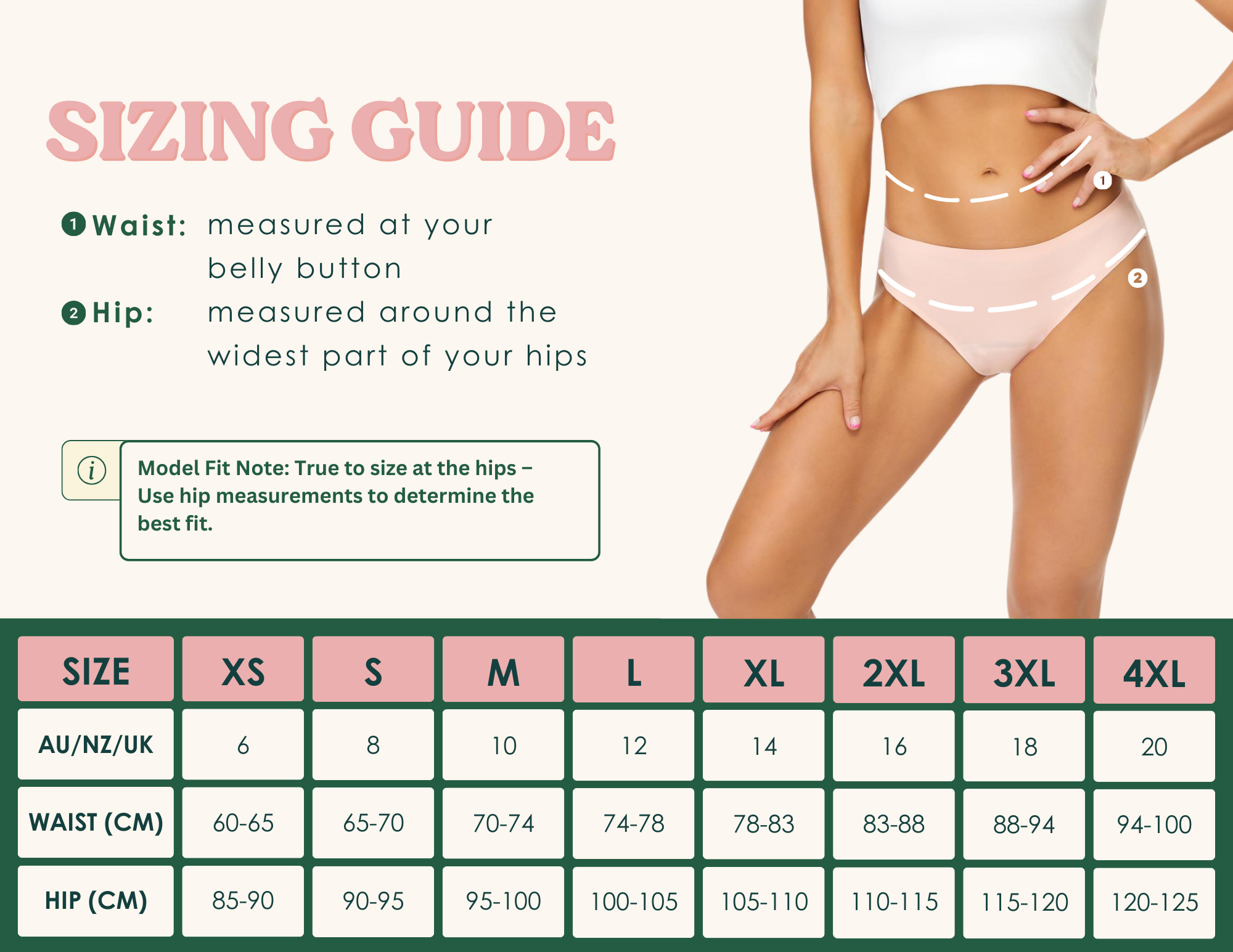 NOTE: Sizing can vary between styles, so we recommend checking our size chart and giving yourself a quick measure instead of relying on your usual AU size—especially if you’re ordering multiple styles.